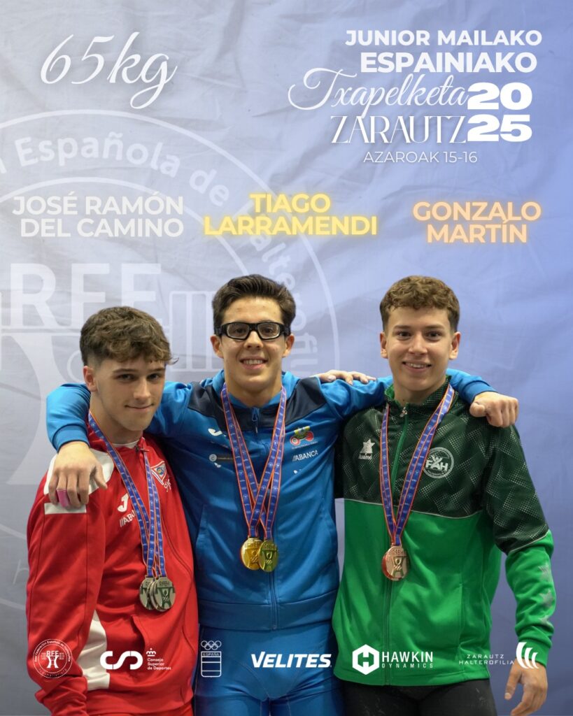 Y destacar también la de Tiago Larramendi. Un competidor nato que con 6 válidos se alza con el titulo y se proclama campeón de España Junior. ‘La Pulga’ cedió la medalla de Oro en dos tiempos ya que sus entrenadores prevalecieron la estrategia a las medallas, estrategia que lo llevaron a lo más alto. Esto no es solo un deporte de fuerza. Enhorabuena!