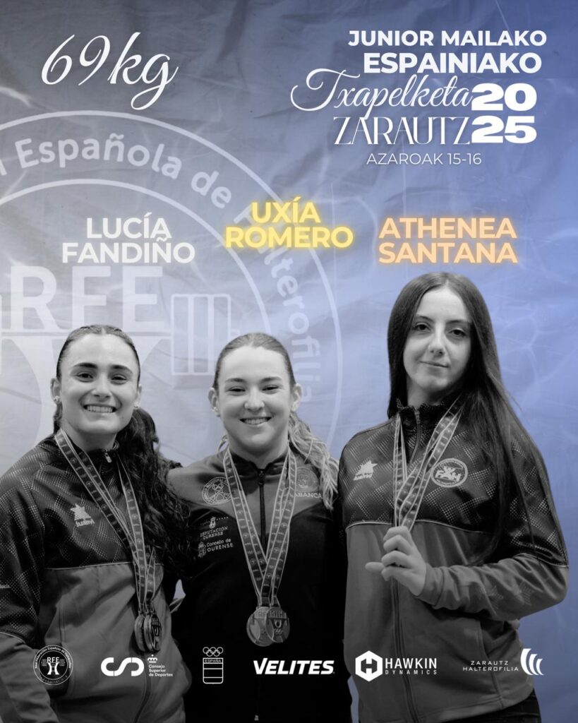 El finde semana ha sido muy bueno, buenas marcas que han conseguido un total de 17 medallas, que nos dejan a 4 campeones de España Sub 20 como son: Digna Silo en categoría de 86 kg, Uxía Romero en categoría de 69 kg y Tiago Larramendi, en 65 kg.